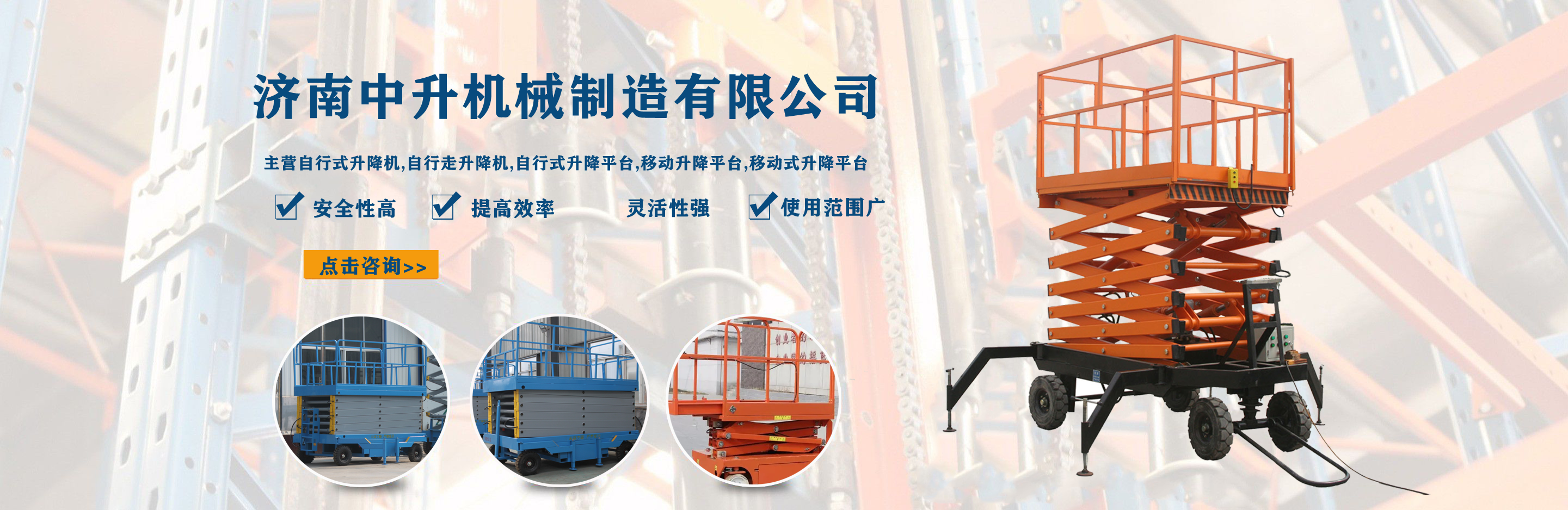 濟(jì)南中升機(jī)械制造有限公司主營自行式升降機(jī),自行走升降機(jī),自行式升降平臺,移動升降平臺,移動式升降平臺等產(chǎn)品,產(chǎn)品廣泛用于廠房維護(hù)、工業(yè)安裝、設(shè)備檢修、物業(yè)管理、倉庫、航空、機(jī)場、港口、車站、加油站、體育場、展覽館等多種行業(yè)和場所, 公司設(shè)備精良、工藝合理、檢測手段齊全,技術(shù)力量充足,公司創(chuàng)立伊始即本著“專注、專心”的經(jīng)營理念,依托技術(shù)團(tuán)隊優(yōu)勢和設(shè)備硬件保障,全力打造良心的升降平臺企業(yè)。 我公司始終以“品質(zhì)為本,服務(wù)至上”作為企業(yè)宗旨。只要你訂購了我公司的產(chǎn)品,無論你身處何方,我們都會及時派出技術(shù)人員為你服務(wù)!...